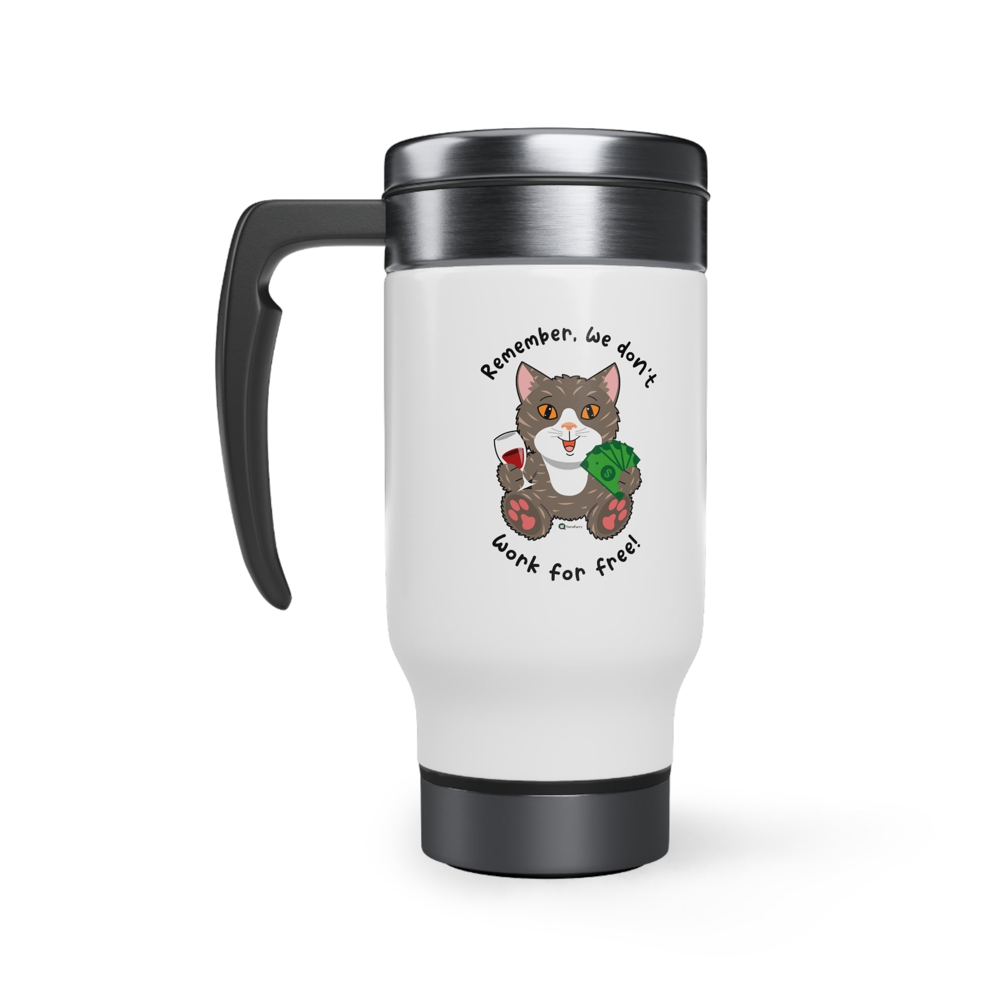 Stainless Steel Travel Mug with Handle, 14oz - HipaaCat - We don't Work For Free