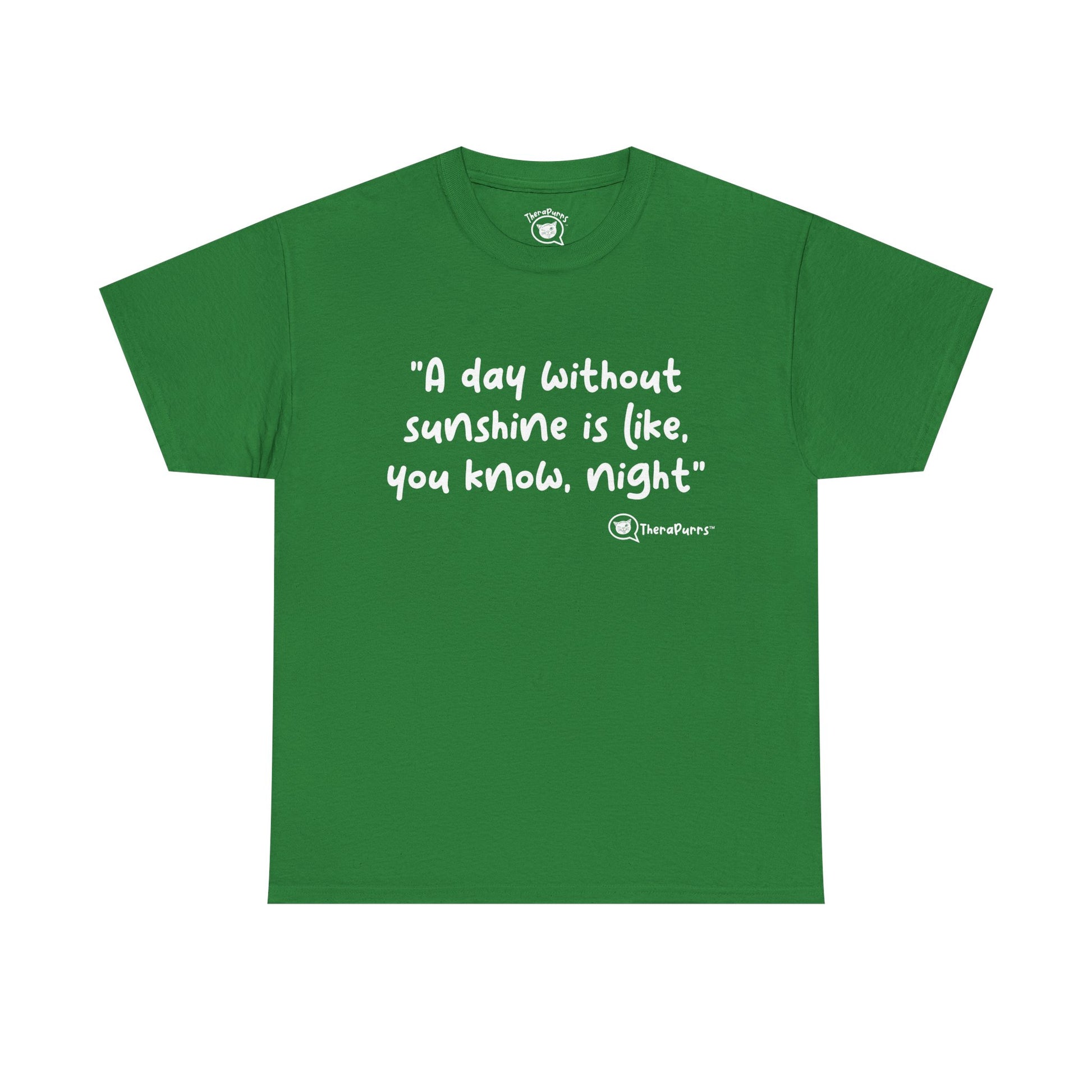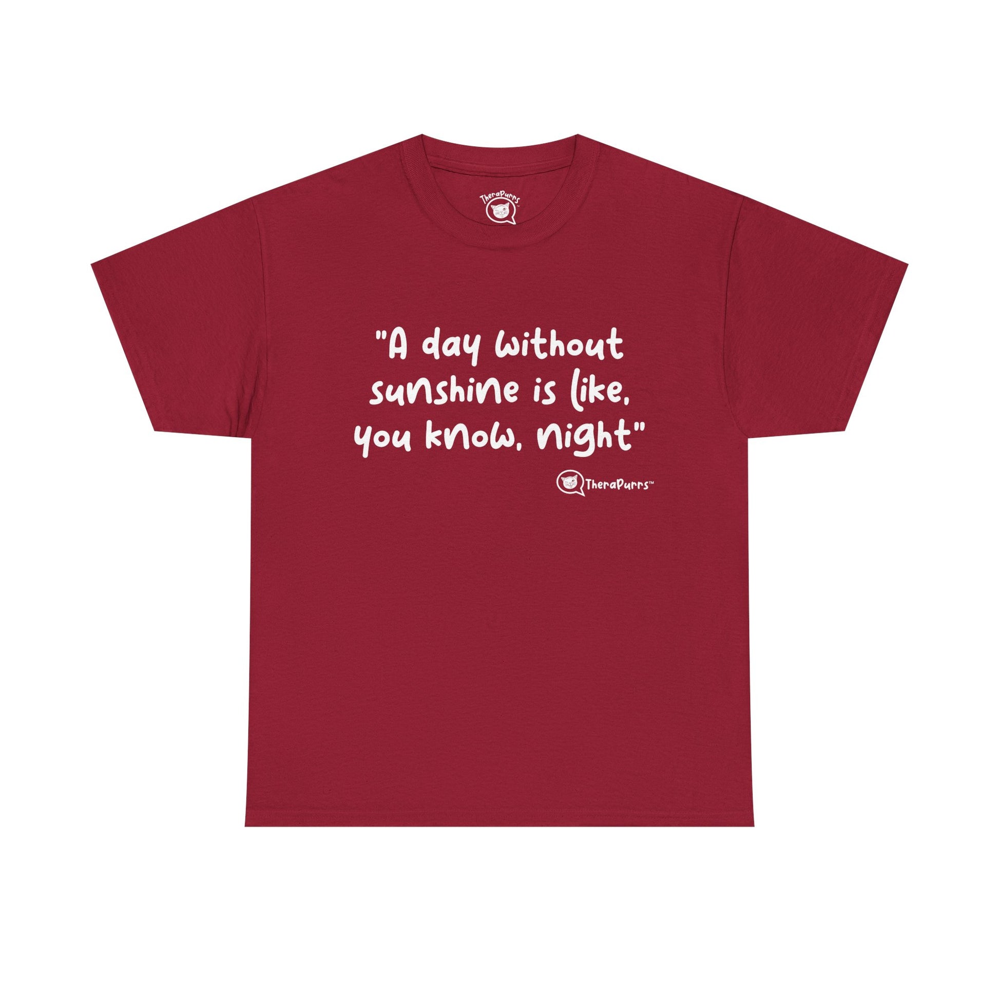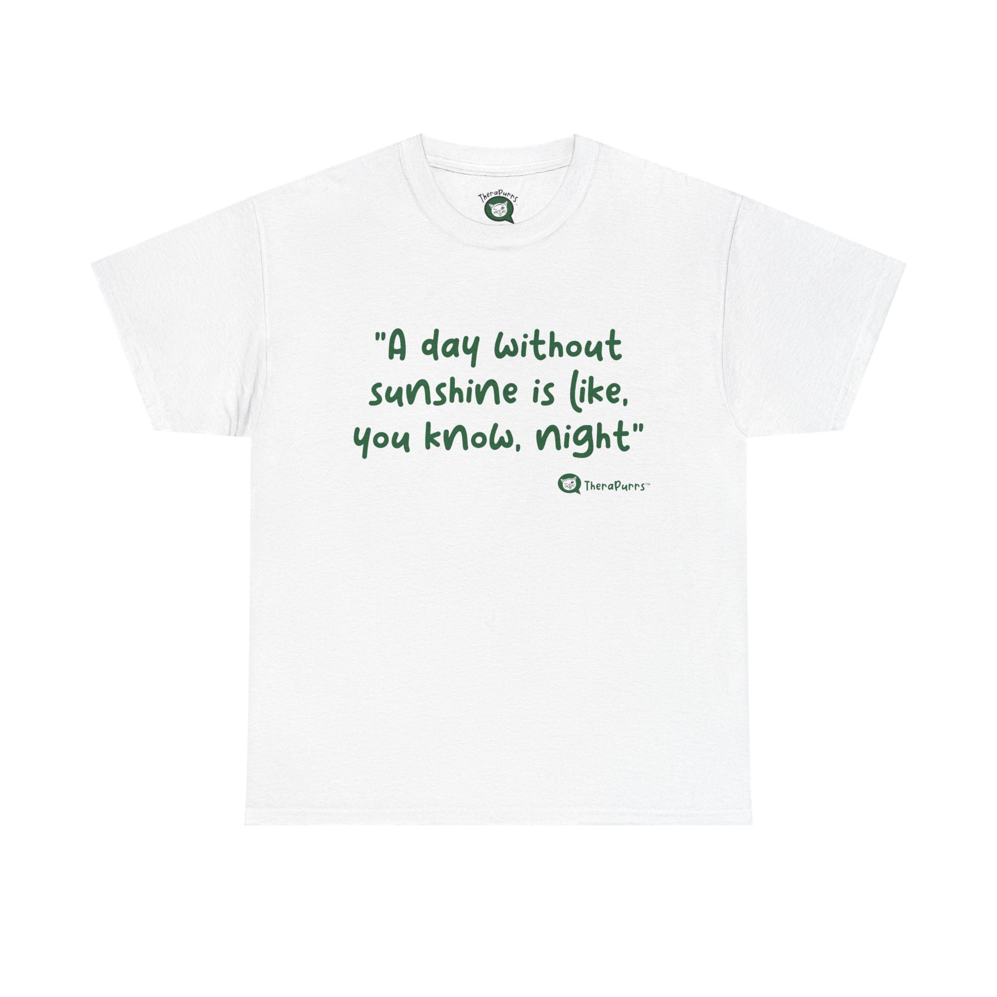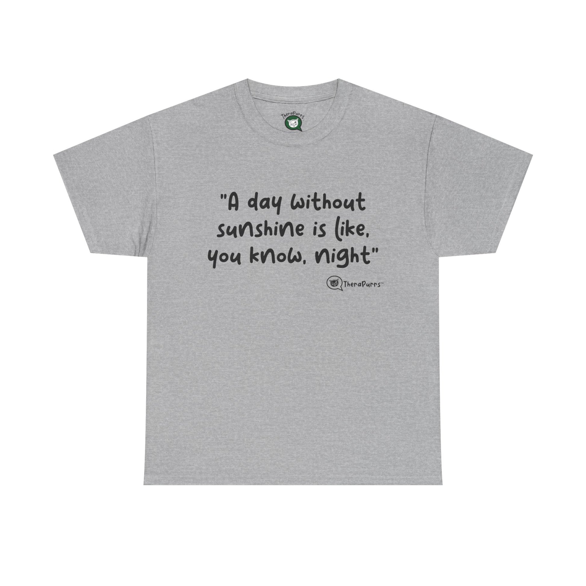 TheraPurrs Phrase T-Shirt - "A day without sunshine is like, you know, night"