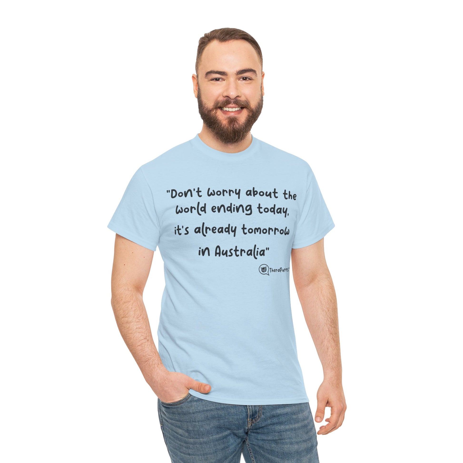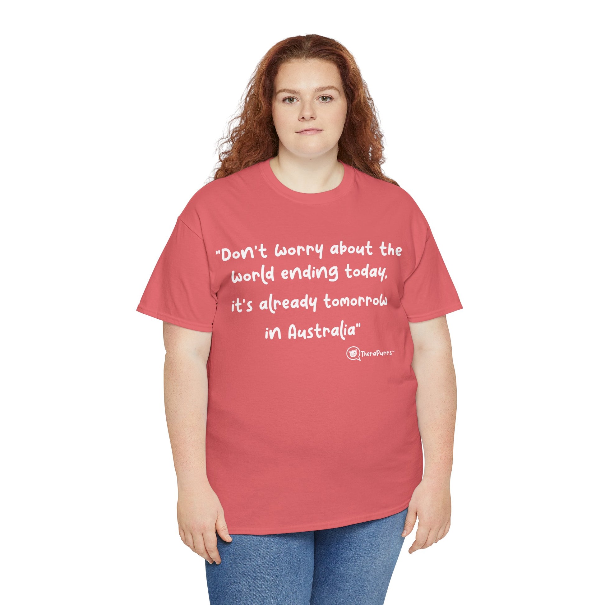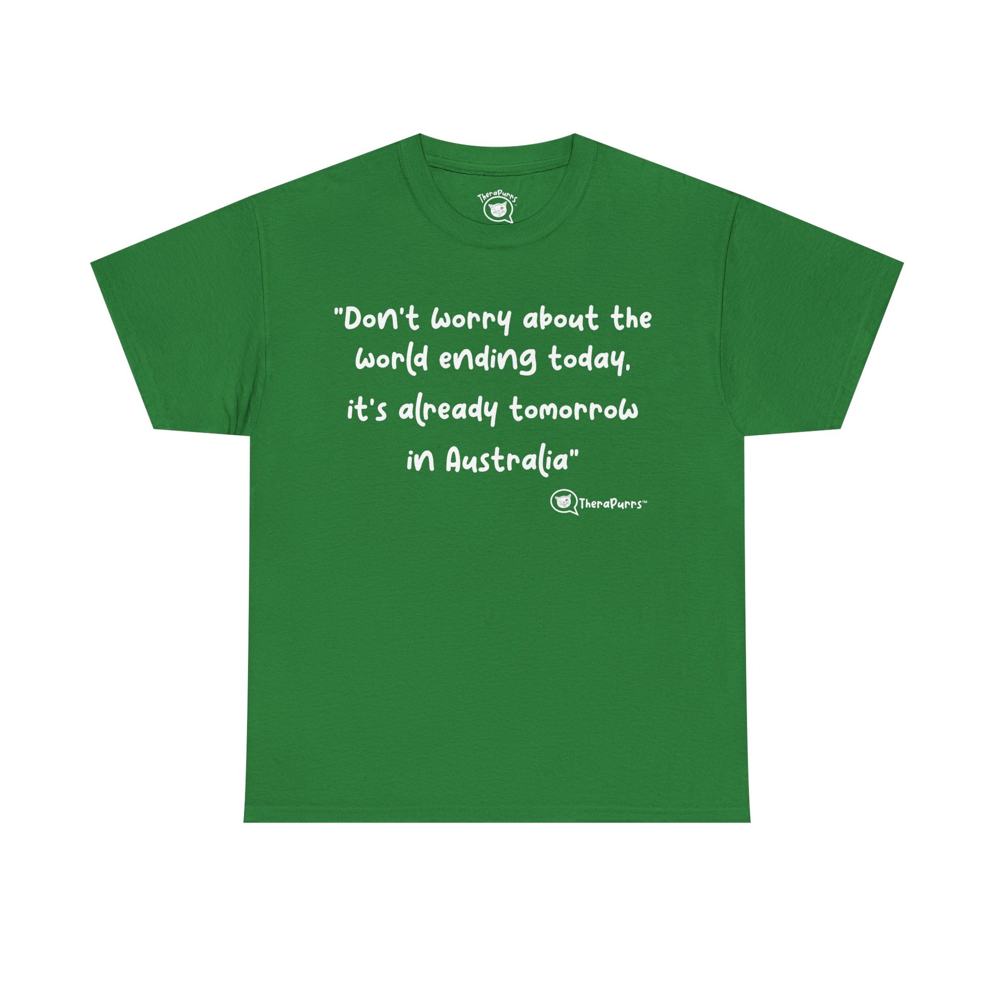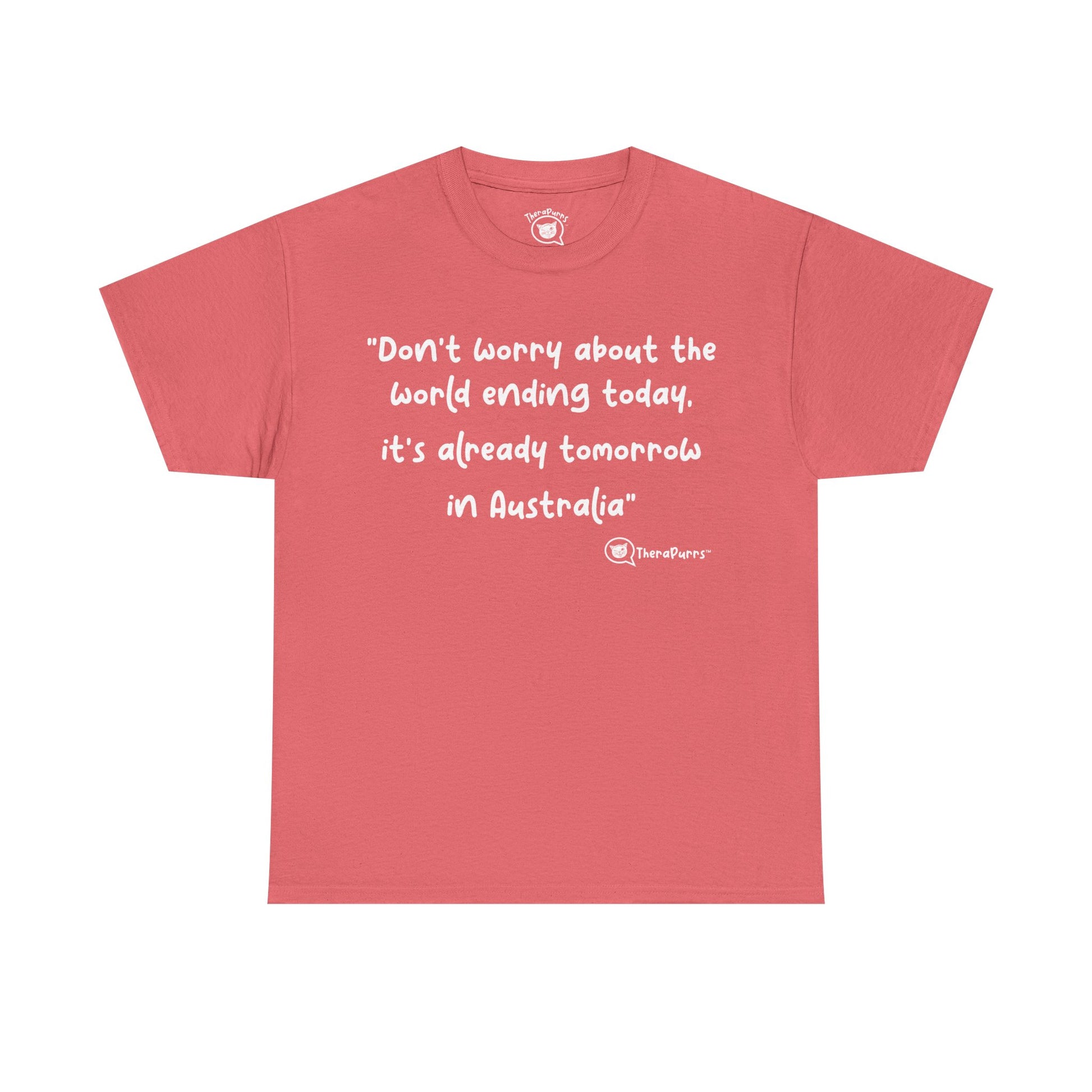 TheraPurrs Phrase T-Shirt - "Don't worry about the world ending today, it's already tomorrow in Australia"