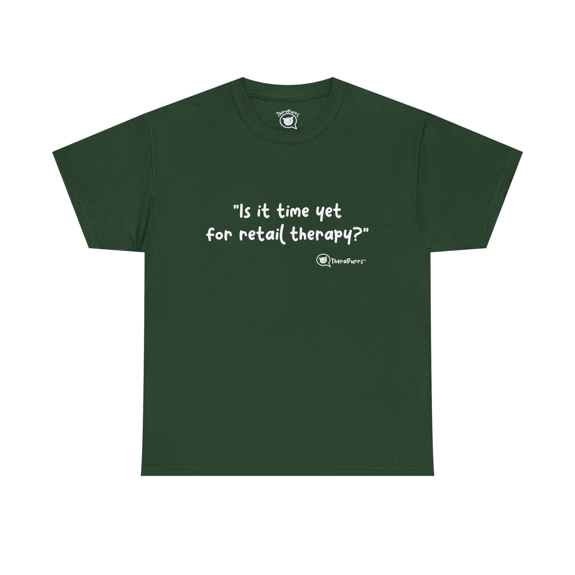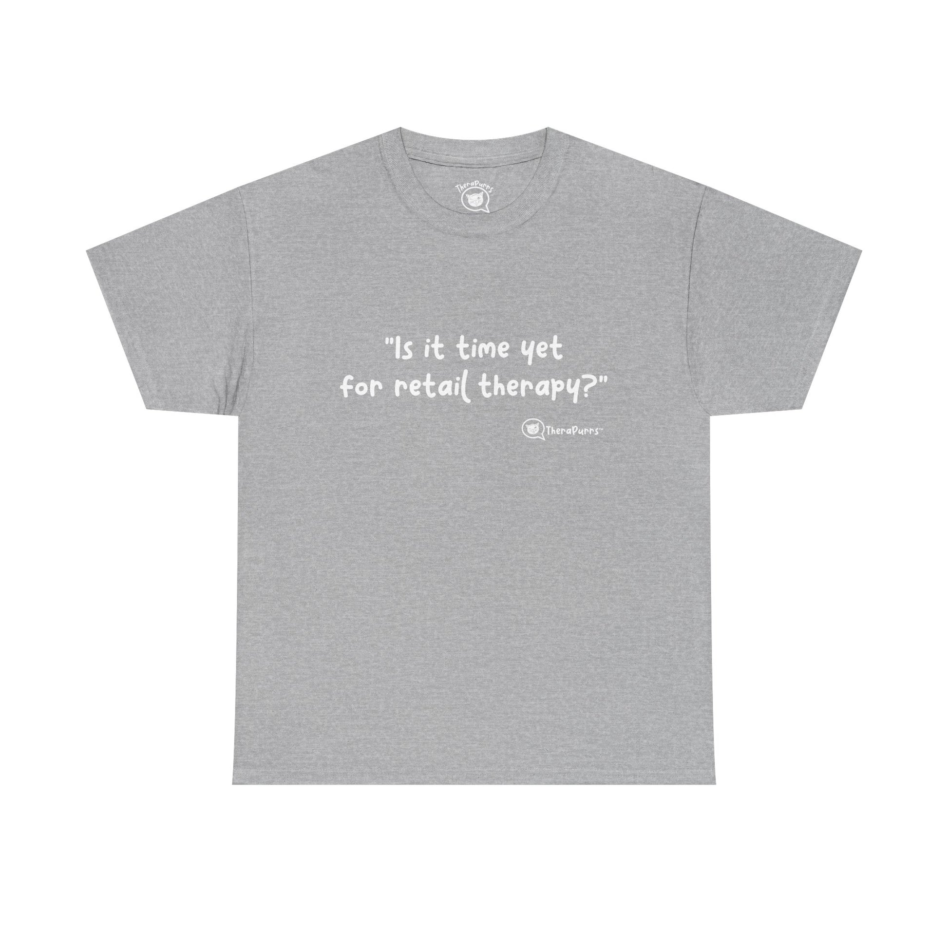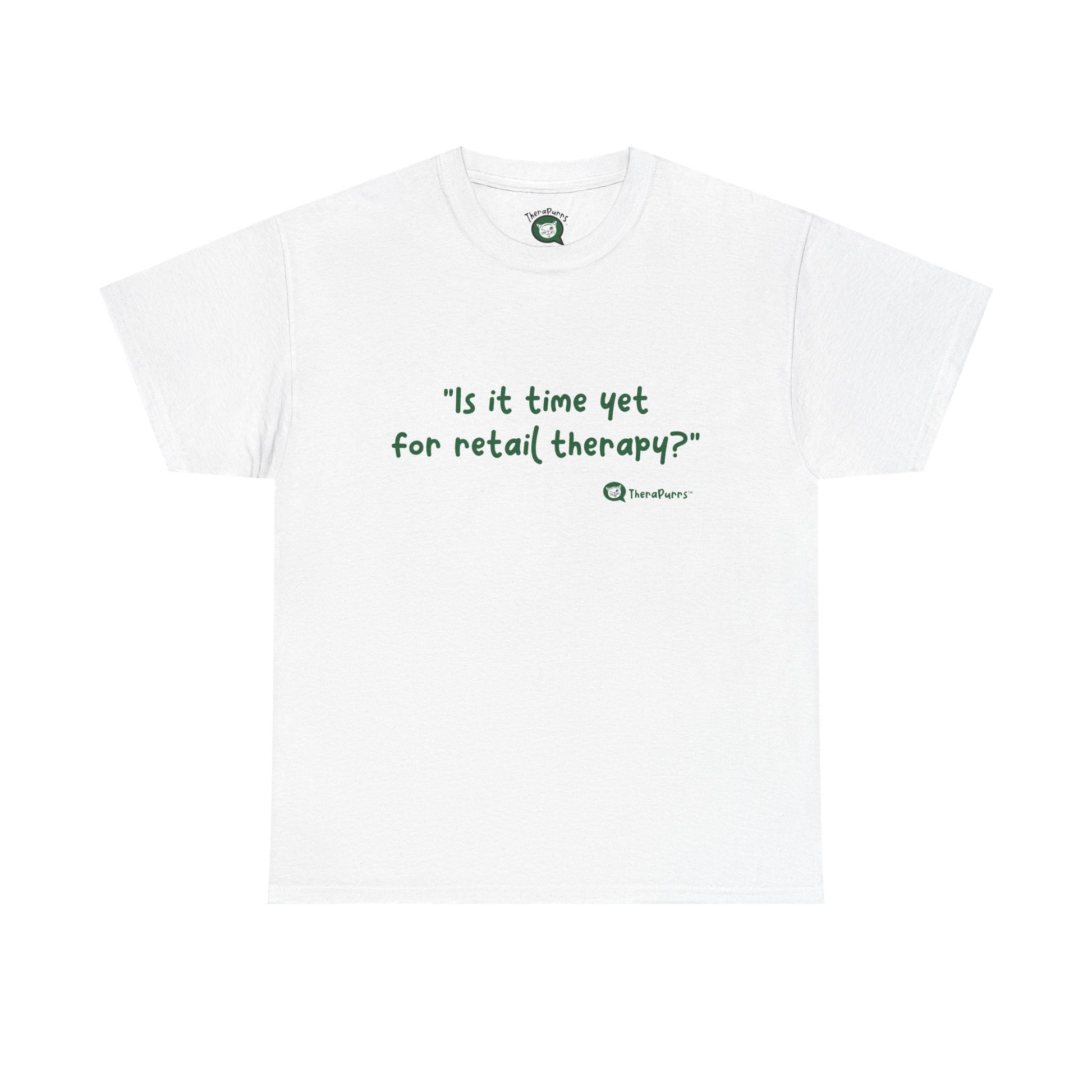 TheraPurrs Phrase T-Shirt - "Is It Time Yet for Retail Therapy?"