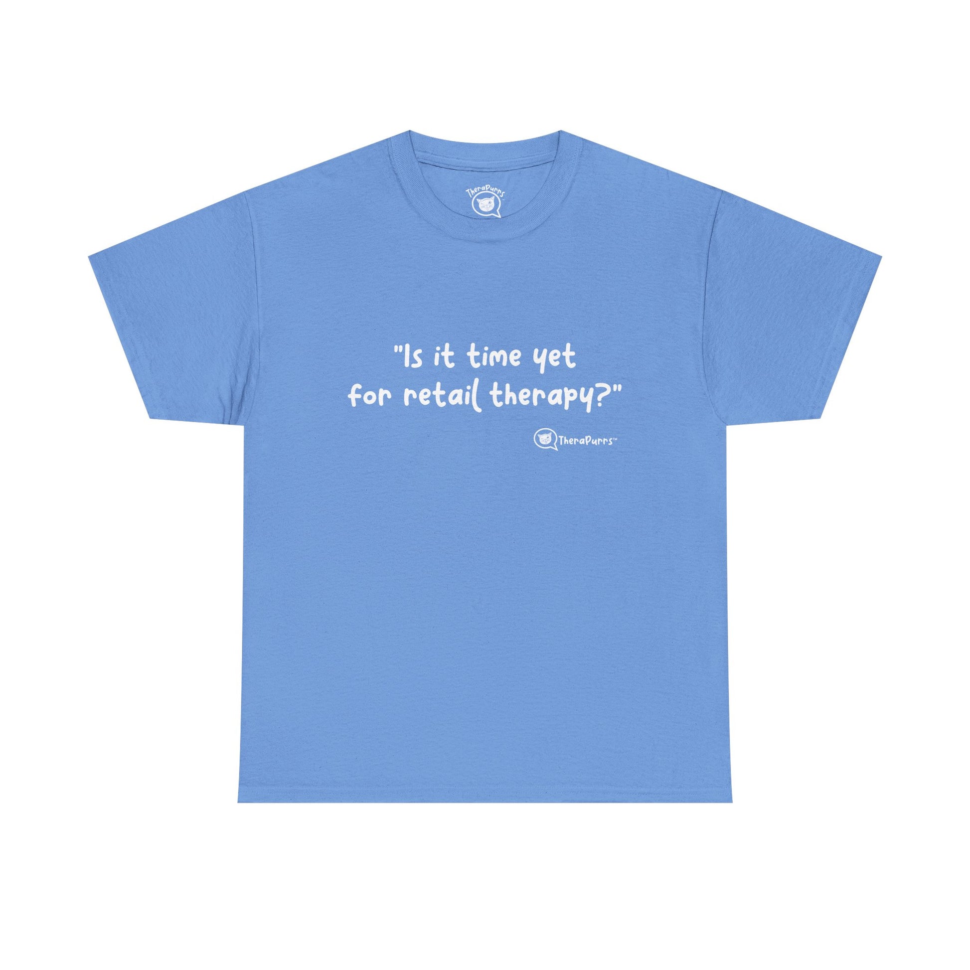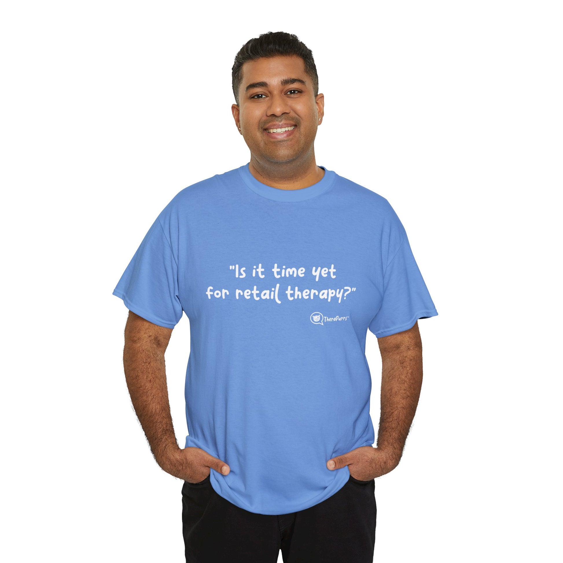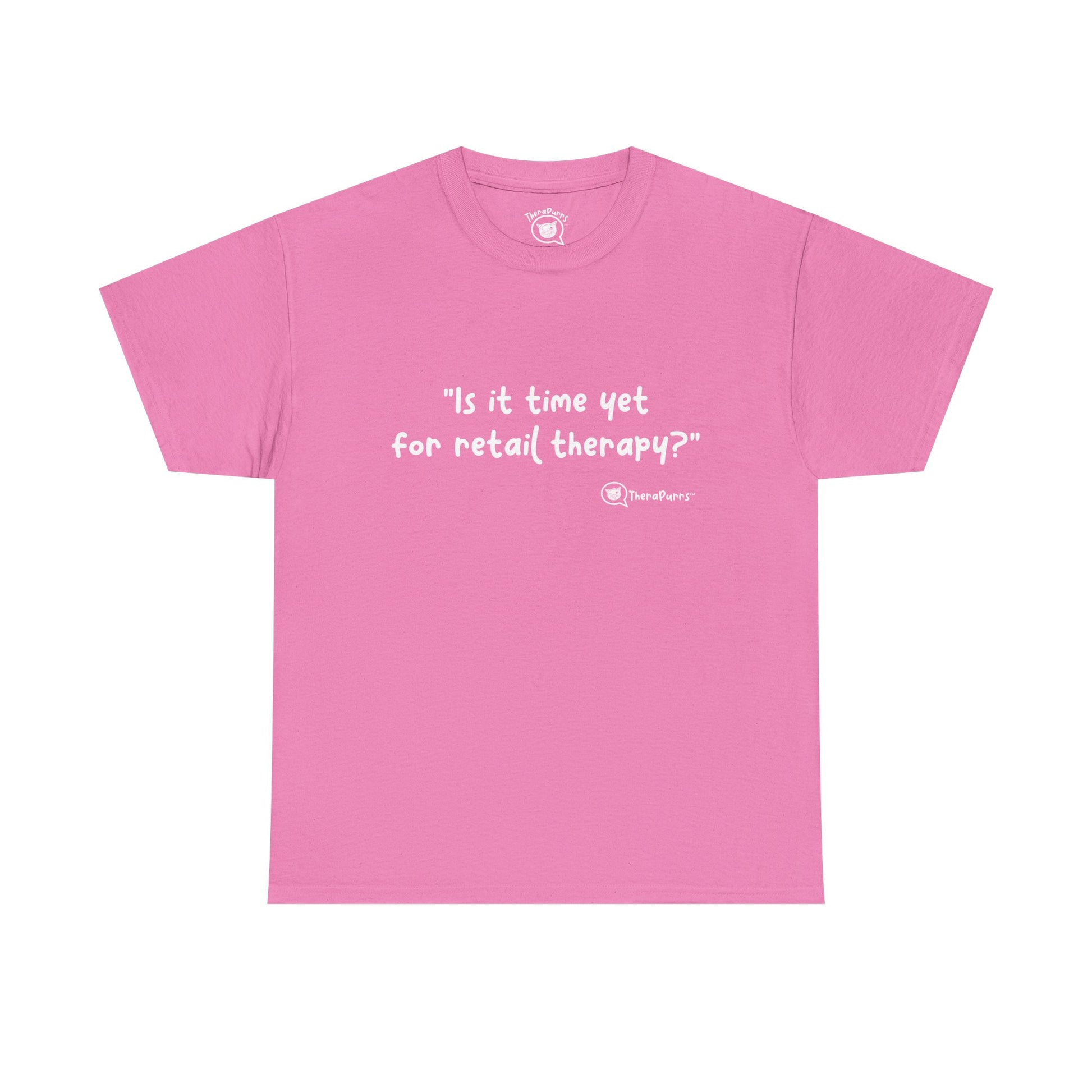 TheraPurrs Phrase T-Shirt - "Is It Time Yet for Retail Therapy?"