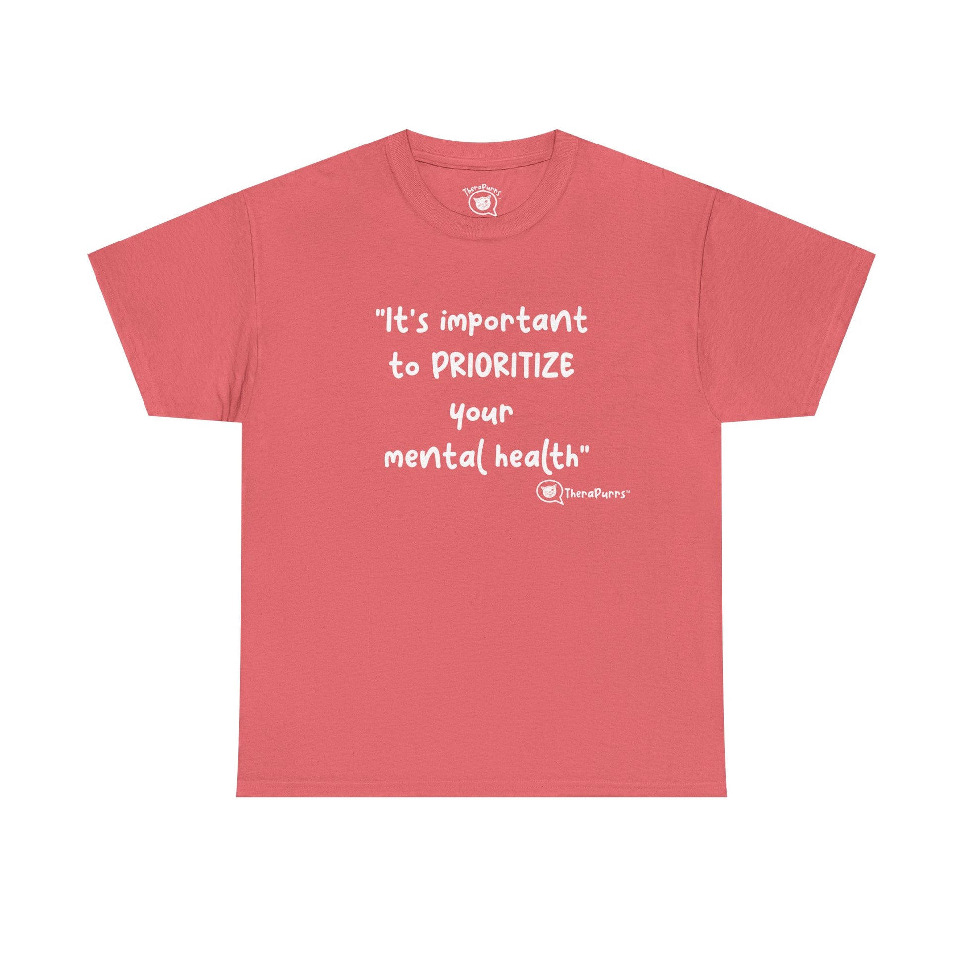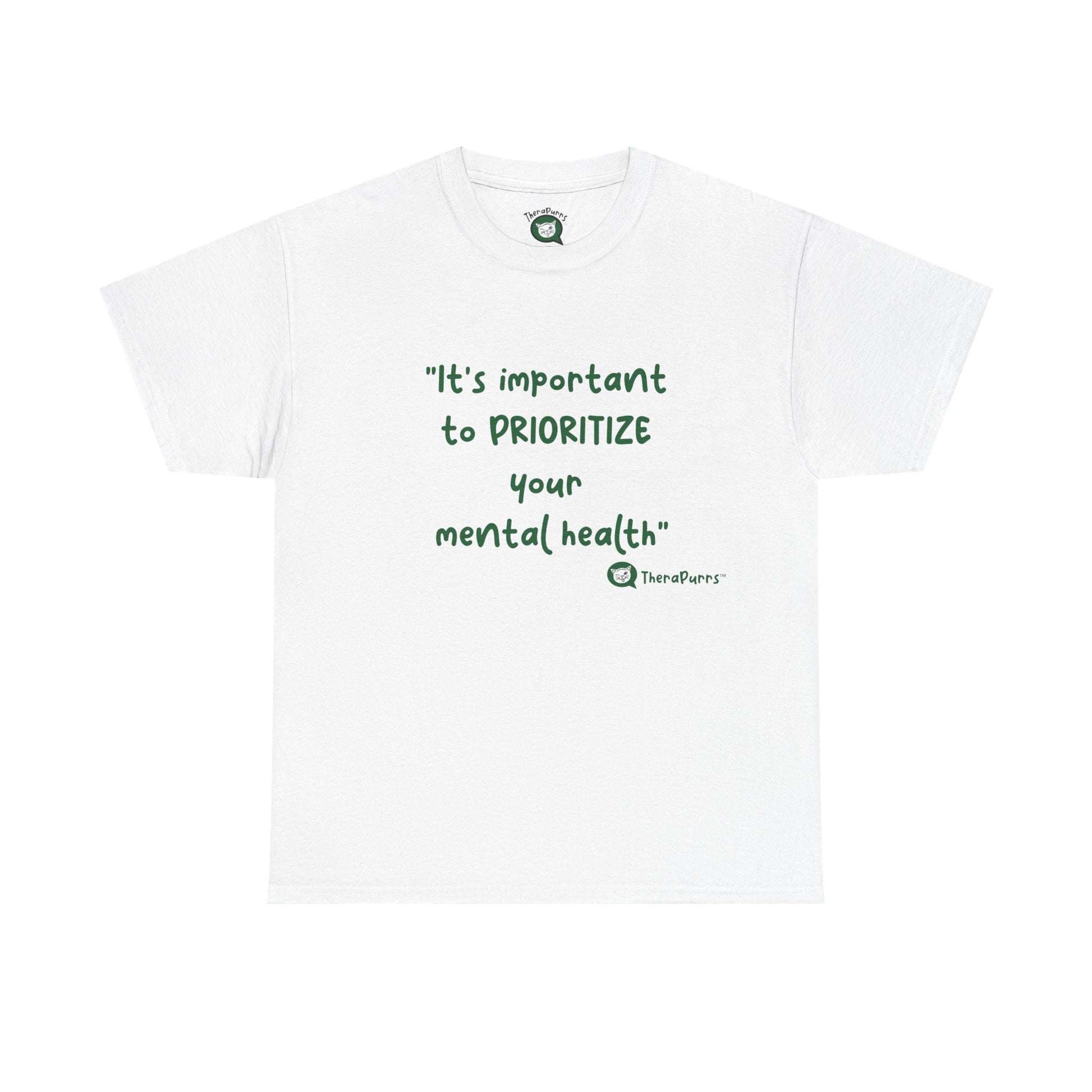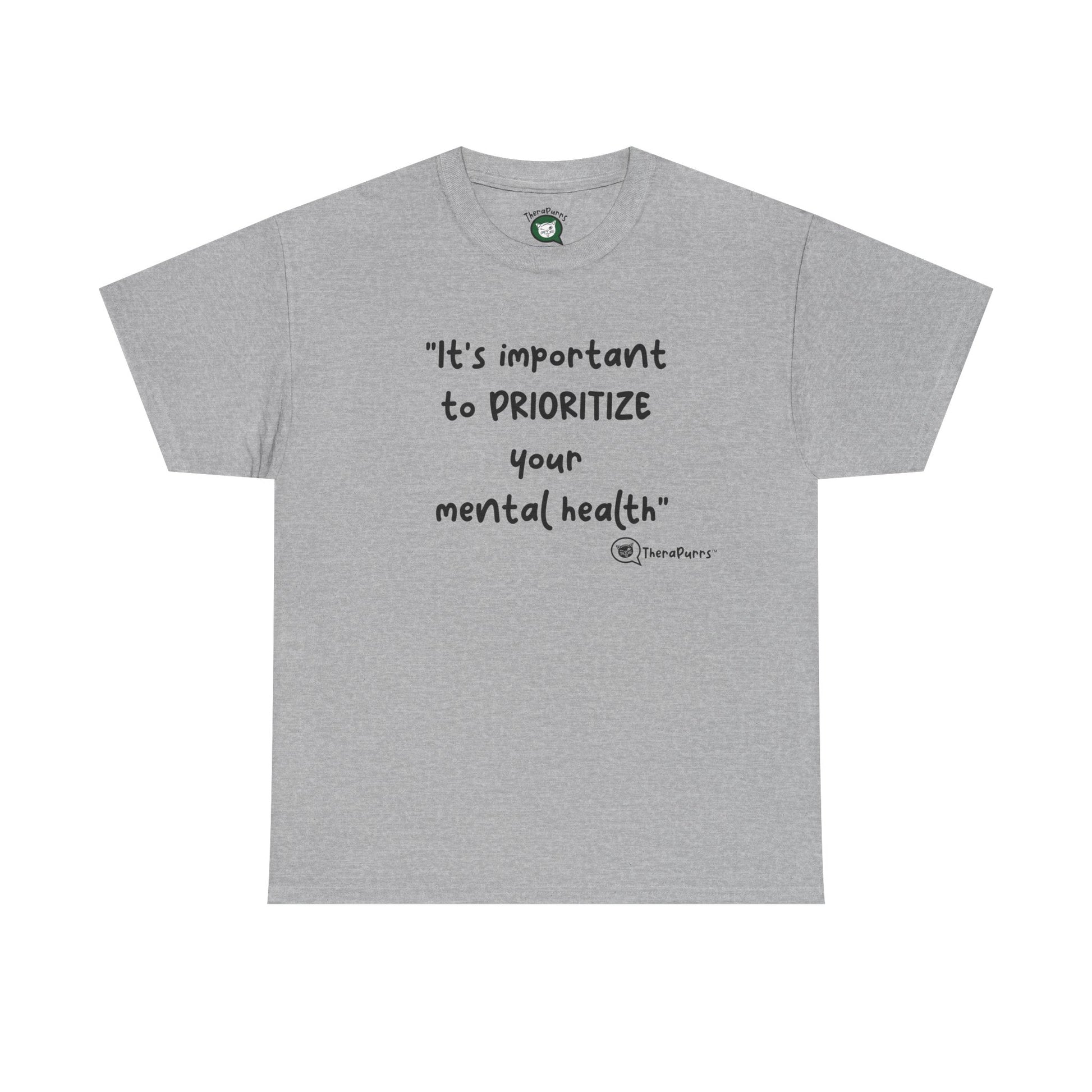 TheraPurrs Phrase T-Shirt - "It's important to PRIORITIZE your mental health"