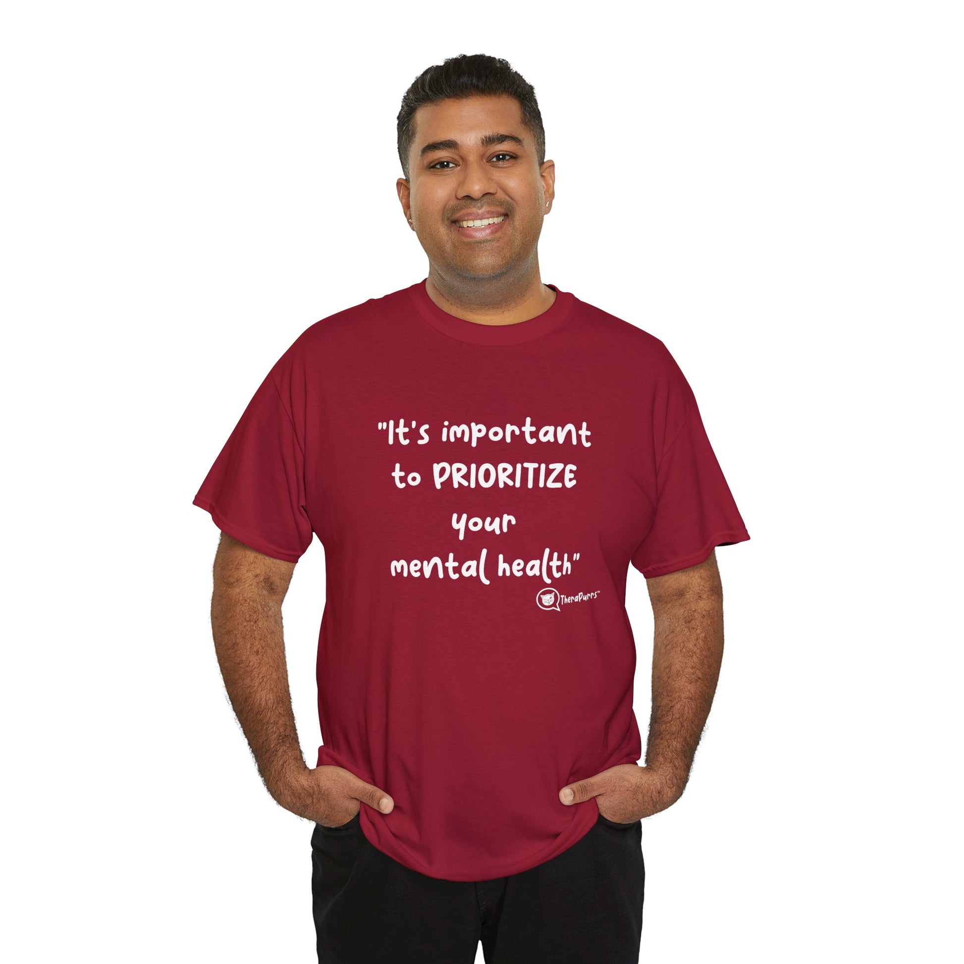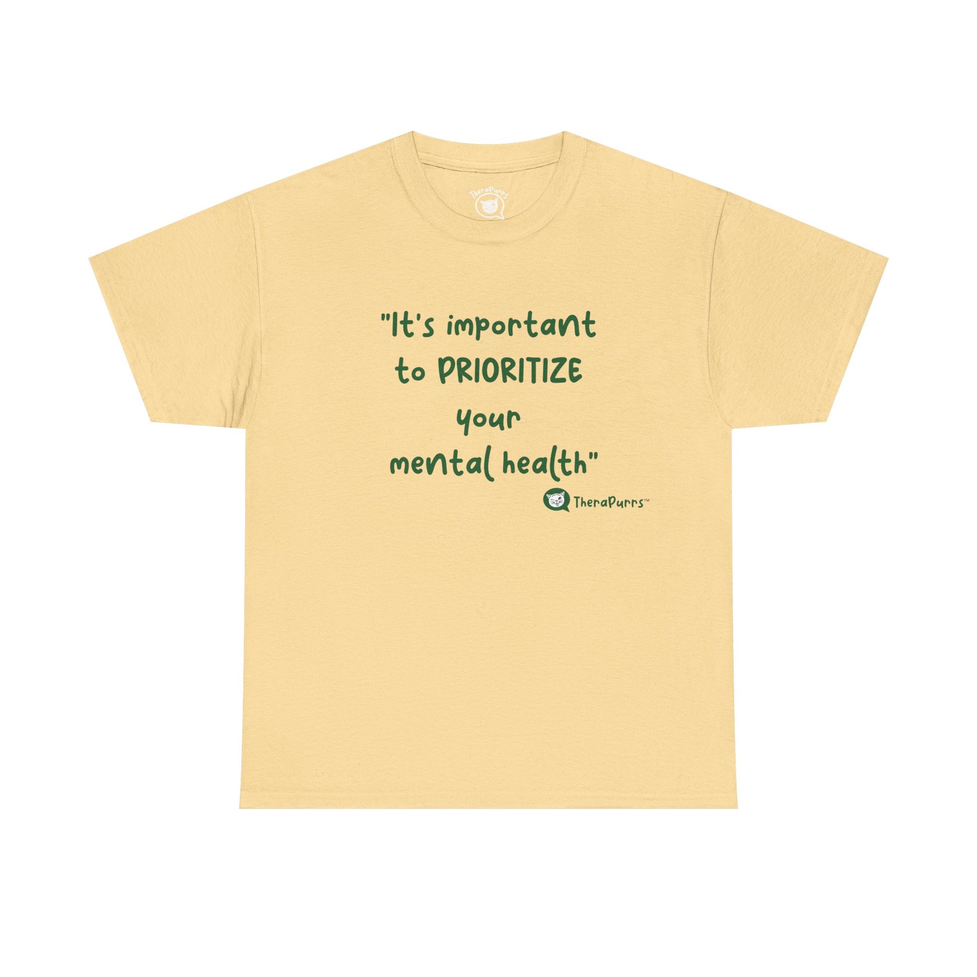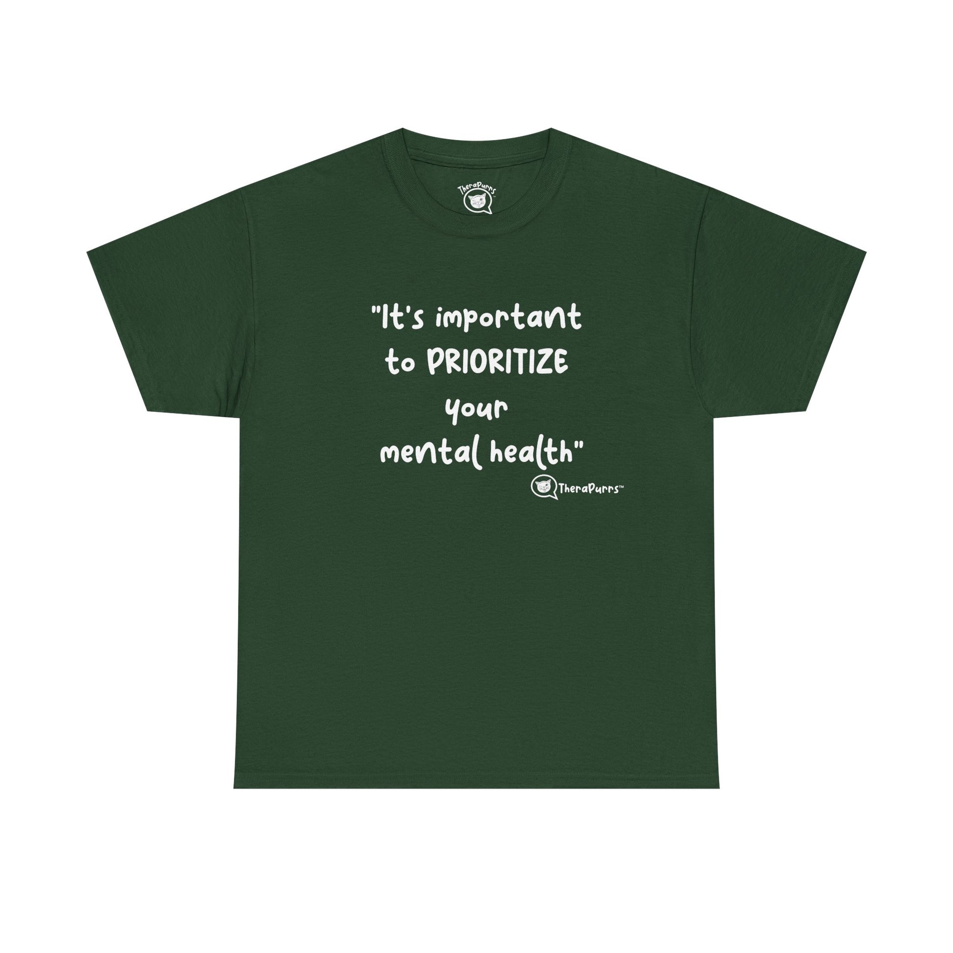 TheraPurrs Phrase T-Shirt - "It's important to PRIORITIZE your mental health"